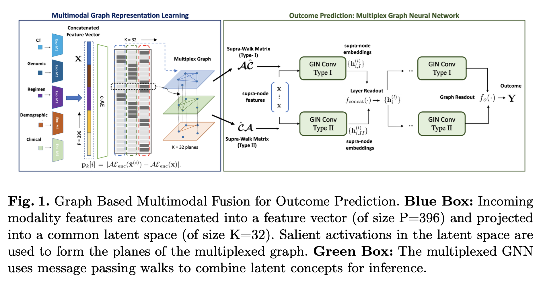 : 멀티플렉스 그래프(multiplexed graph)를 기반으로 모달리티 간 관계를 명시적으로 모델링하고, 새로운 그래프 신경망(GNN)을 설계하여 이를 학습에 활용. 이 프레임워크는 각 모달리티를 타겟 인코딩으로 표현하고, 통합된 잠재 공간에서의 특징 관계를 바탕으로 그래프를 구성함으로써, 기존의 단순한 early/late/intermediate fusion 방식과 달리 모달리티 간의 개별성과 상호작용을 모두 반영할 수 있음.
