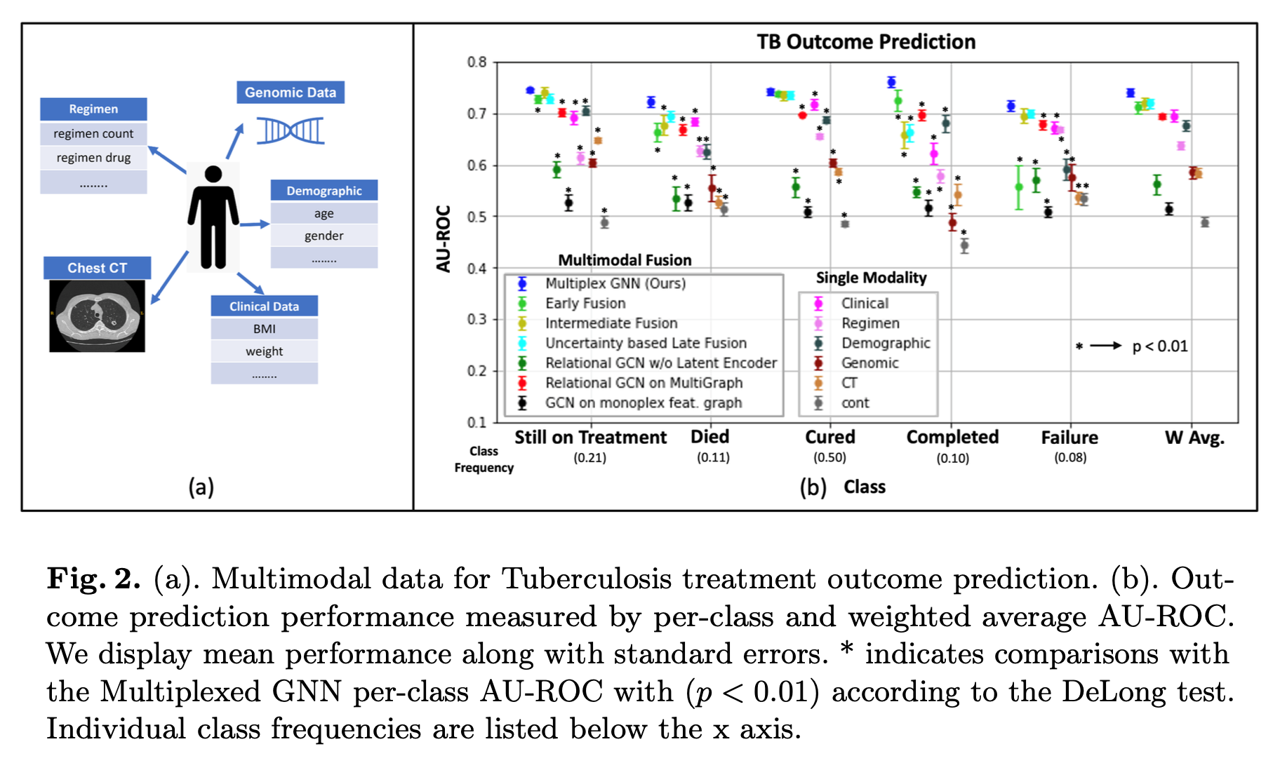 결핵(TB)은 세계에서 가장 흔한 감염병, 최근 사망률 감소 BUT 단일 또는 다제내성균의 출현으로 인해 빠르고 효과적인 치료가 어려워짐. TB 치료 결과를 정확히 예측하려면 환자의 임상, 유전체, 영상 데이터를 포함한 다중 모달리티(multimodal) 정보가 필요함. 하지만 각각의 모달리티가 어떤 정보를 잘 담고 있으며, 이들을 어떻게 결합해야 최적의 예측이 가능한지는 명확하지 않음.