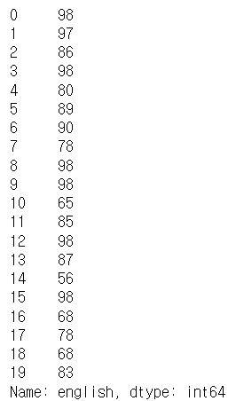 변수가 1개만 출력할 경우 출력 결과가 series 자료 구조로 변한다. DataFrame 형태로 출력하고 싶다면 [ ]로 한 번 더 감싸면 된다.