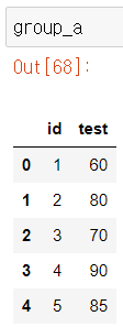 group_a = pd.DataFrame({'id' : [1, 2, 3, 4, 5],