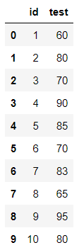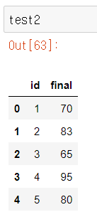 test2 = pd.DataFrame({'id' : [1, 2, 3, 4, 5],