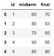 test1 = pd.DataFrame({'id' : [1, 2, 3, 4, 5],